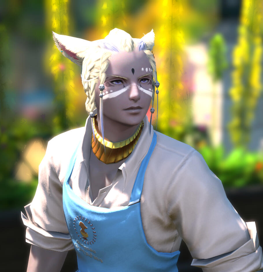 ABOUT: Actions will always speak louder than words for Laqa, because speech is still something of a novelty to him. Raised in the Qestir tribe in the Azim Steppe under the tradition of silence, he's recently made the long journey from Reunion to the forests of Gridania, picking up new culinary skills along the way. Willing to share a snack or practice spoken conversation, Laqa is often found in the kitchen preparing for the next growly stomach he hears.